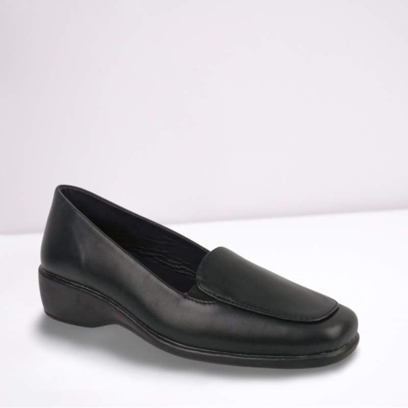 Step into timeless sophistication with this classic black Oxford shoe, thoughtfully designed for the modern woman. Crafted from premium genuine leather, the upper offers a smooth, polished finish that exudes elegance and durability. The sleek silhouette is paired with a lightly cushioned insole for day-long comfort, while the sturdy PU (polyurethane) outsole ensures excellent grip and wear resistance.