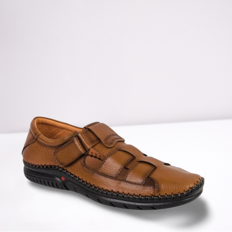 This fisherman style sandal is a lightweight, practical & durable sandal for everyday wear. A velcro fastening strap over instep for easy on & off & fit adjustment, cut outs for ventilation, combined with a smooth leather upper create a distinctive & stylish look.