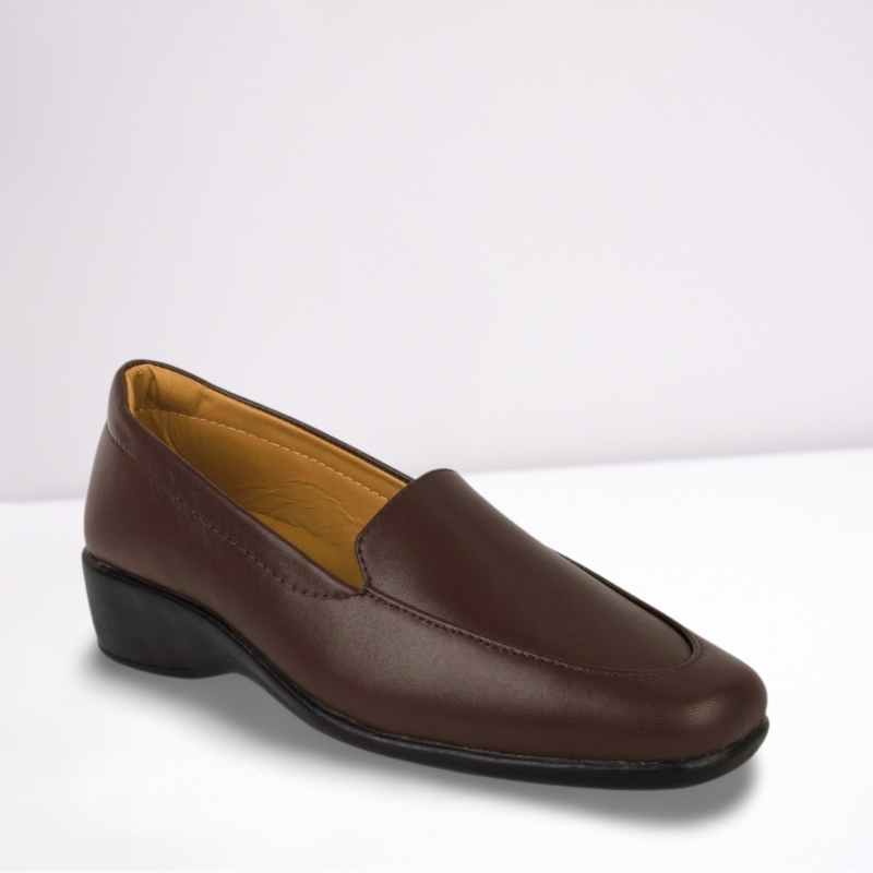 Step into all-day comfort with these elegant women's brown wedge loafers. Designed with a sleek slip-on silhouette, these loafers feature a soft yet durable upper, a cushioned insole for added support, and a stable wedge heel that gives you a flattering lift without compromising comfort.