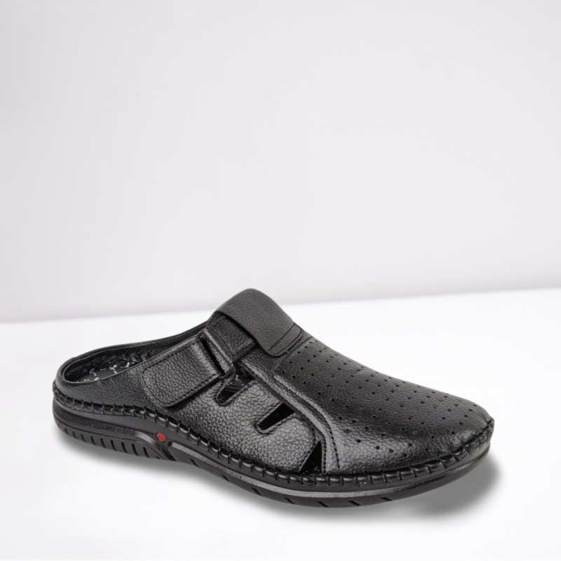 Elevate your casual wardrobe with these sleek leather half loafers. Crafted from premium genuine leather, these backless loafers combine traditional craftsmanship with modern ease. The open-heel design allows for quick slip-on convenience, while the soft leather upper and cushioned footbed provide long-lasting comfort.