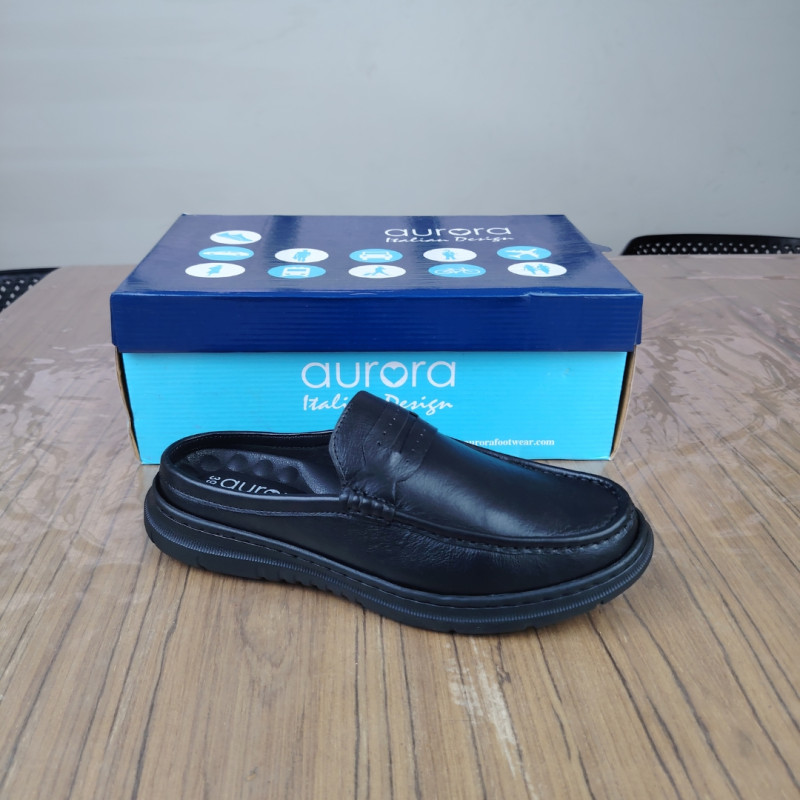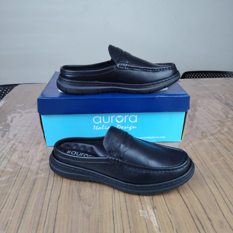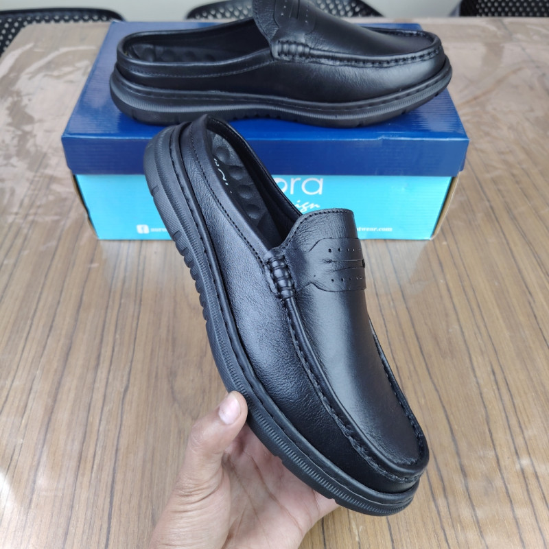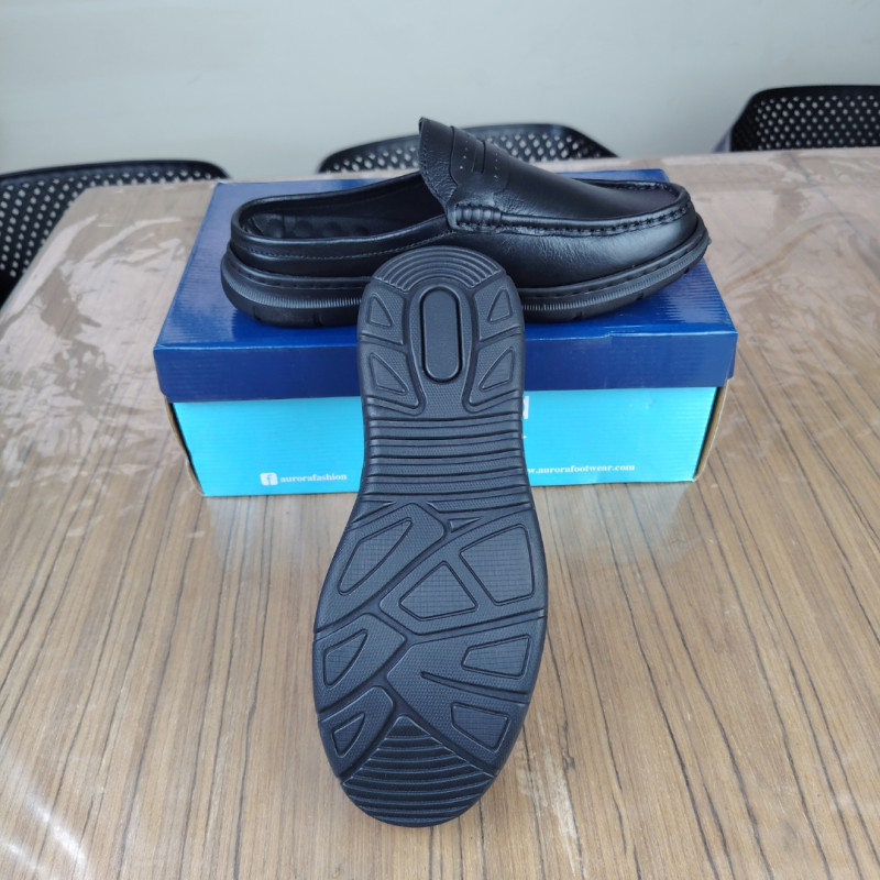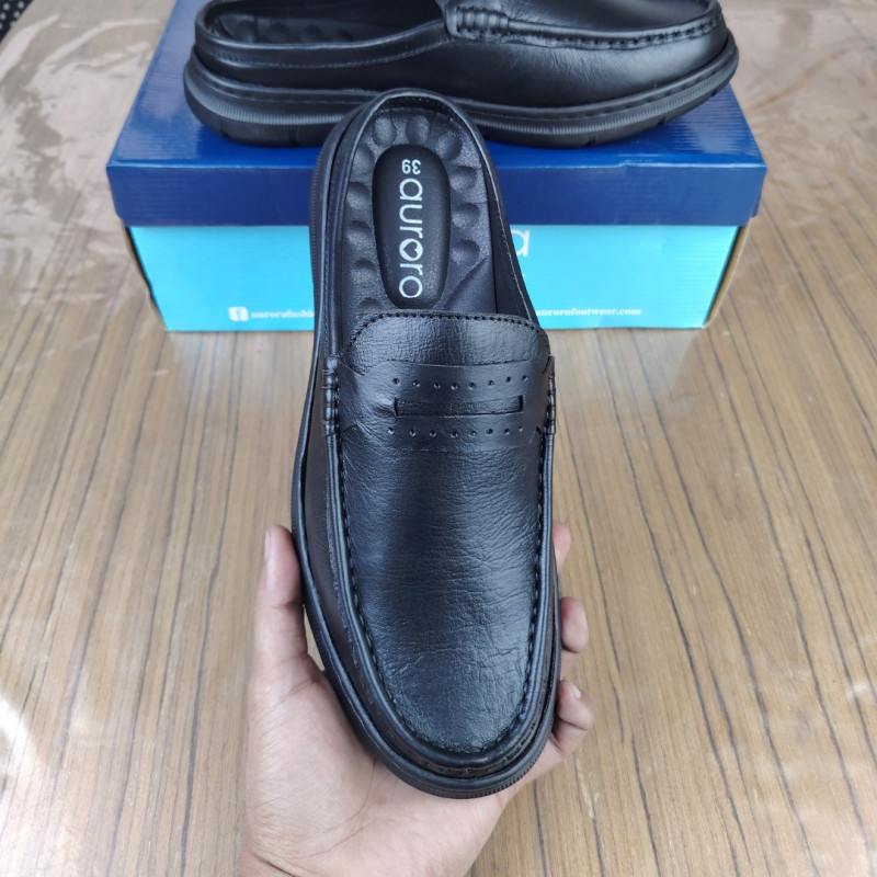 Aurora Men Premium Leather Half Loafer Black