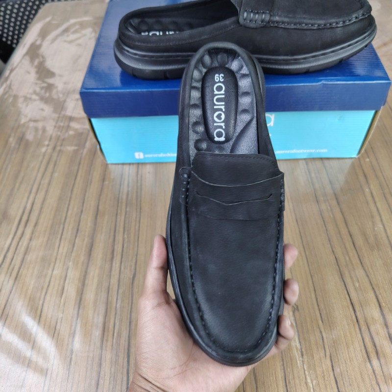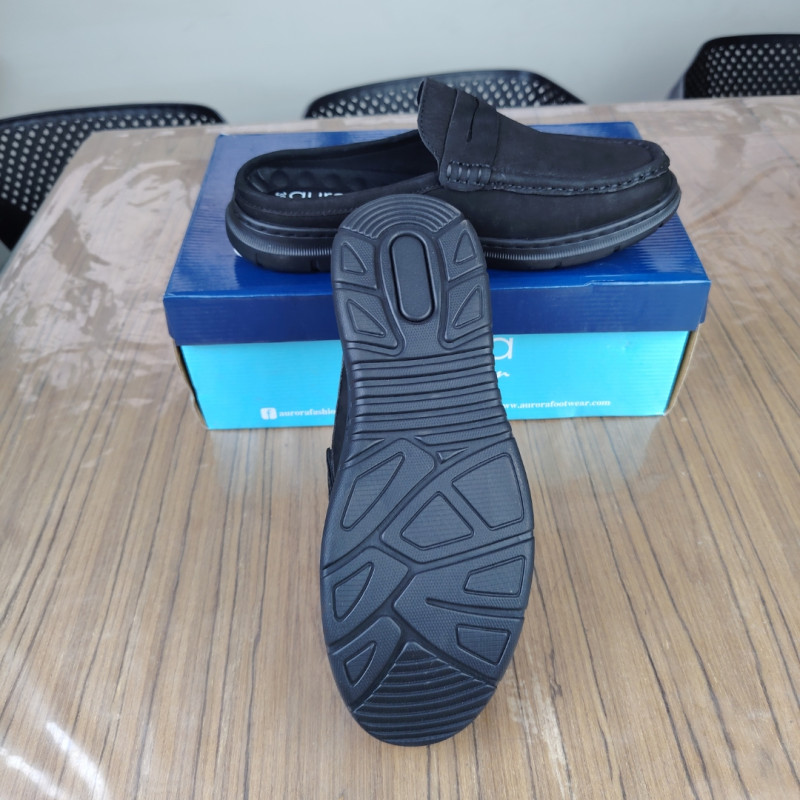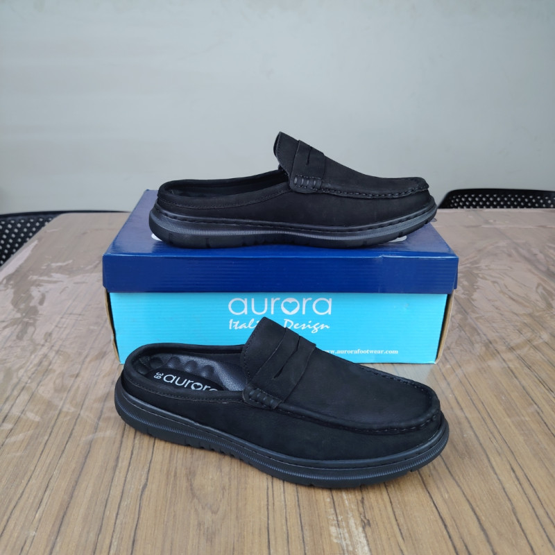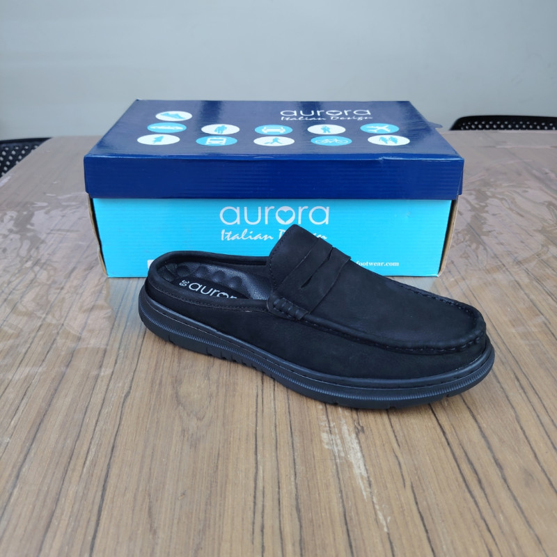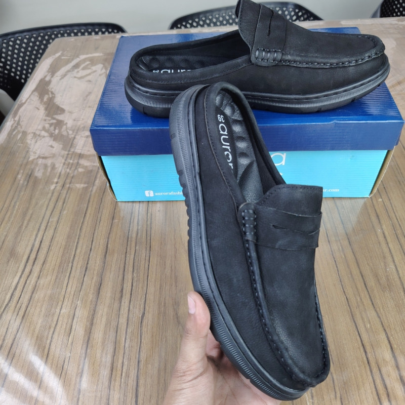 Aurora Men Premium NuBuck Leather Half Loafer Black