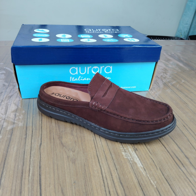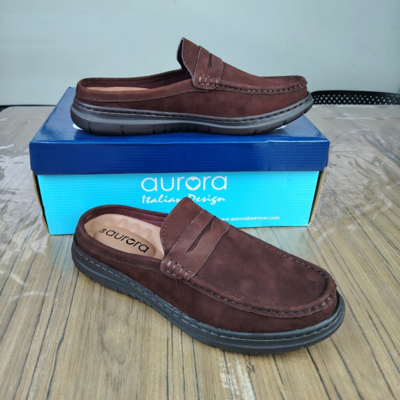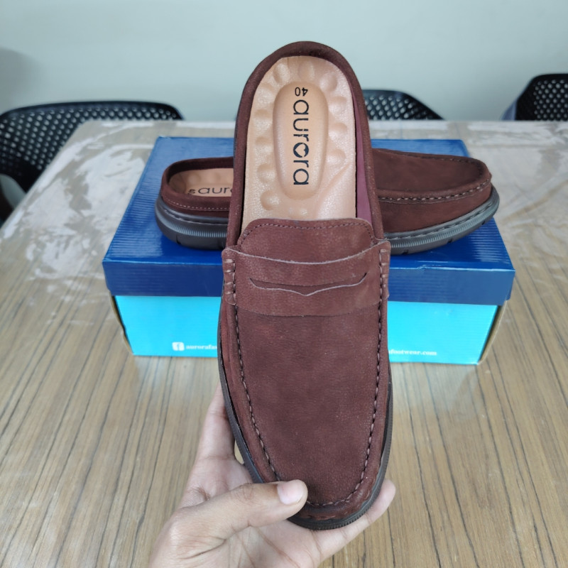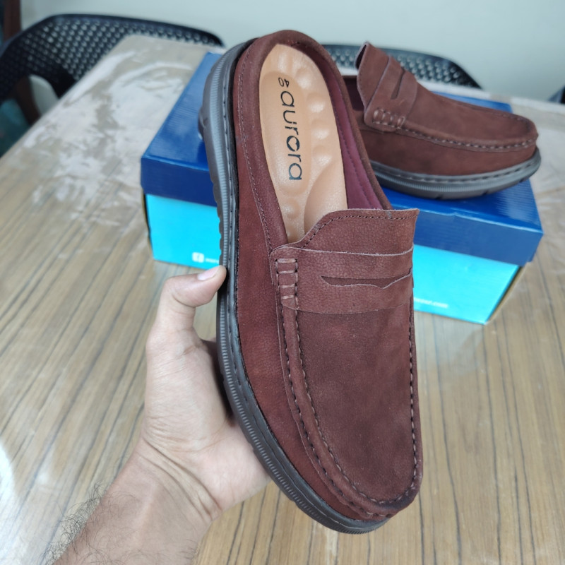 Aurora Men Premium Nubuck Leather Half Loafer Marron
