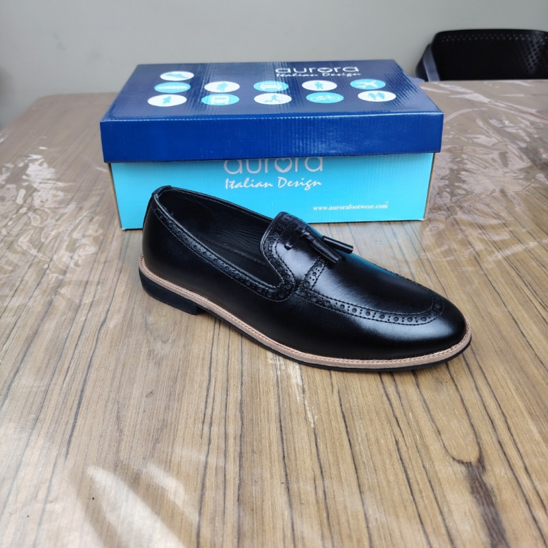 Men Leather Formal Loafers Tassel Black