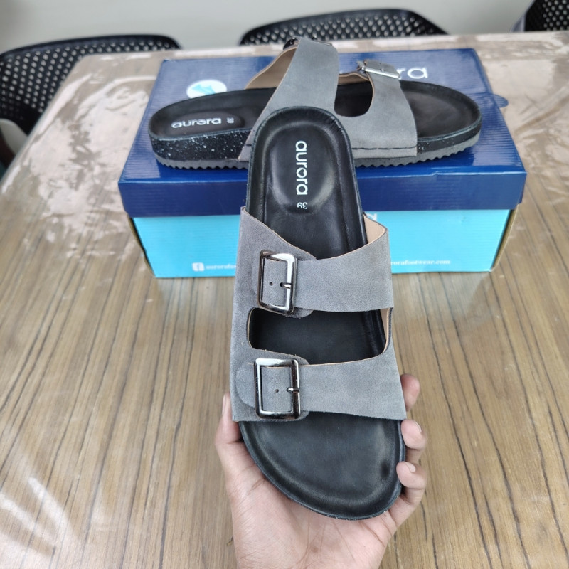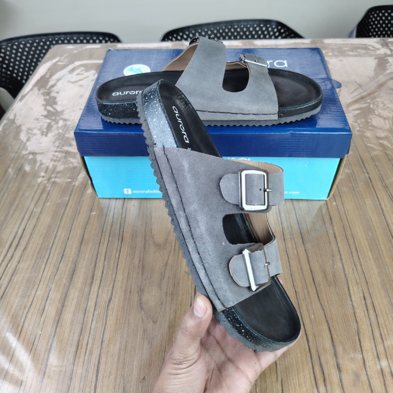 Men’s Classic Suede Cork Sandals – Adjustable Buckle Comfort Footbed Slippers in Ash