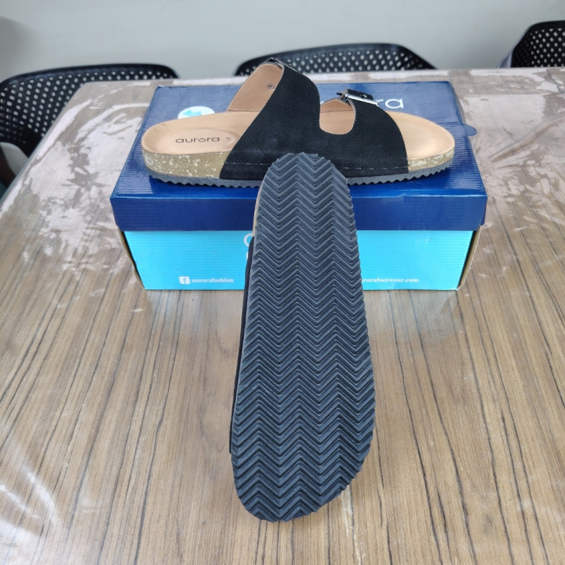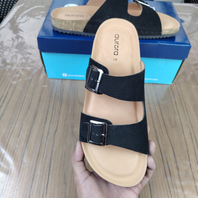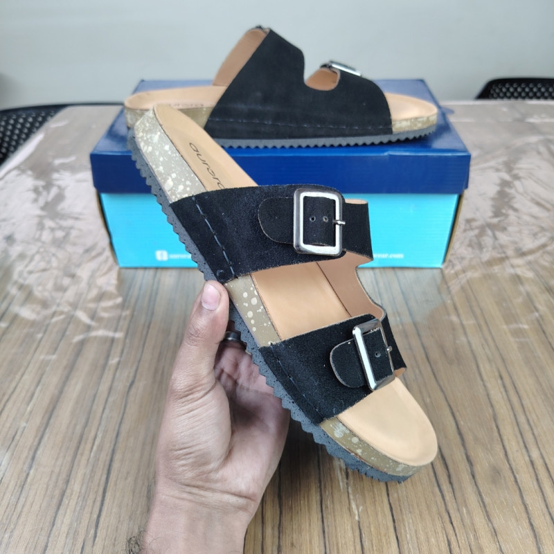 Men’s Classic Suede Cork Sandals – Adjustable Buckle Comfort Footbed Slippers in Black