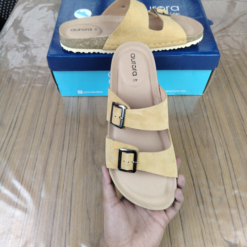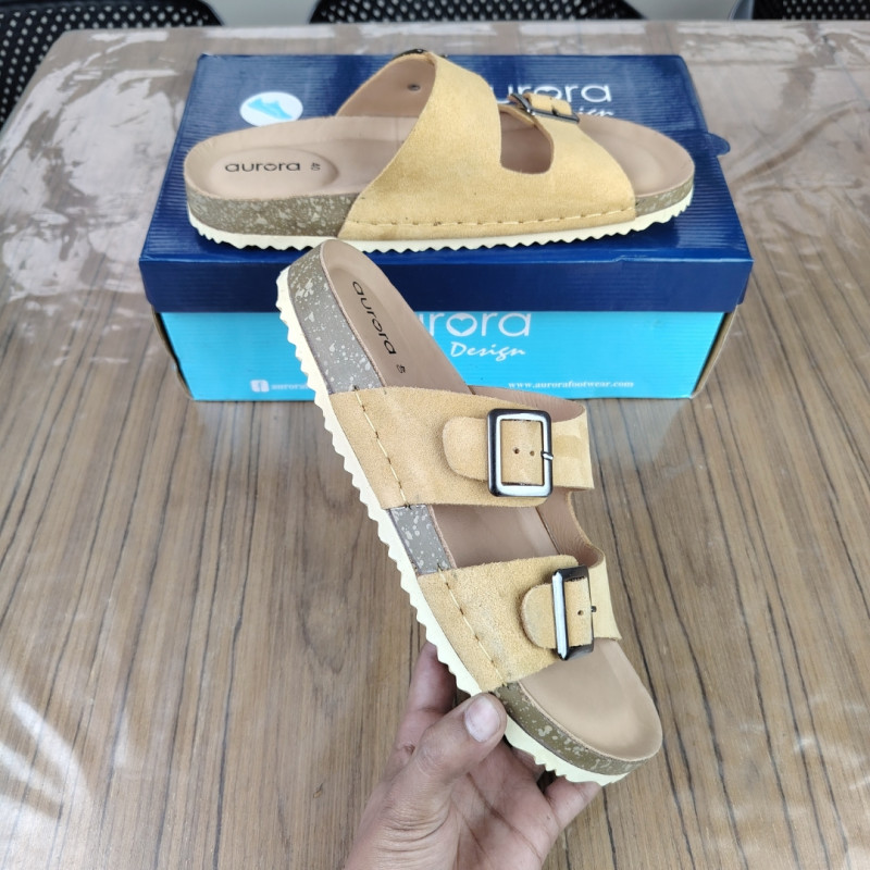 Men’s Classic Suede Cork Sandals – Adjustable Buckle Comfort Footbed Slippers in Yellow